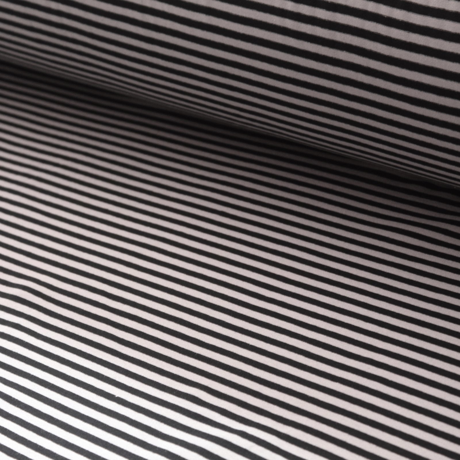 Dieser Jersey mit klassischen Streifen ist für die Kombination mit fast allen anderen Stoffen super geeignet.