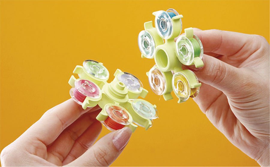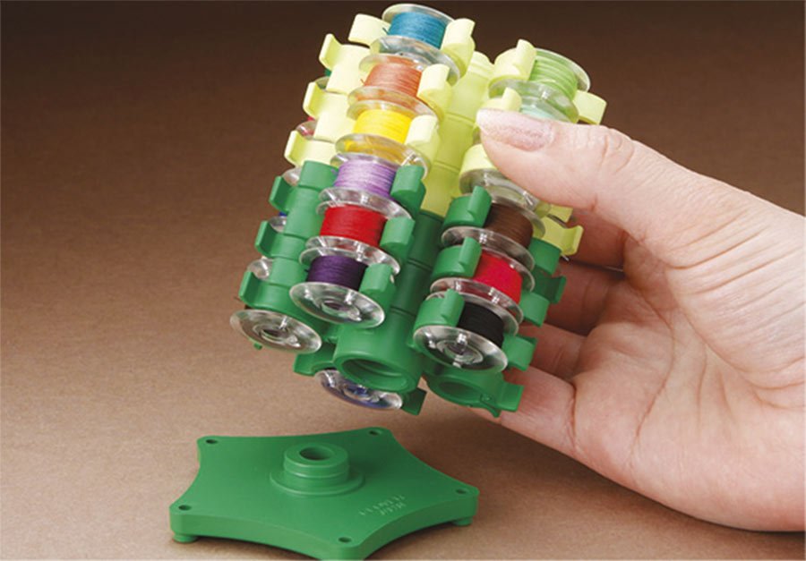 Nimmt jede Art von Spule auf. Ordnen Sie bis zu 30 Spulen. Hält die Fadenenden fest