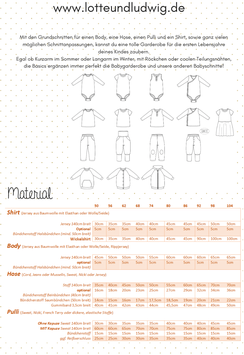 Papierschnittmuster Baby Basics von Lotte & Ludwig Gr. 50-104