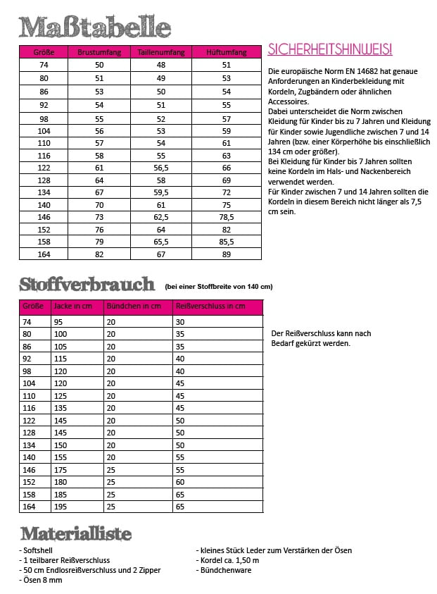 Papierschnittmuster Fadenkäfer Softshelljacke Kinder
