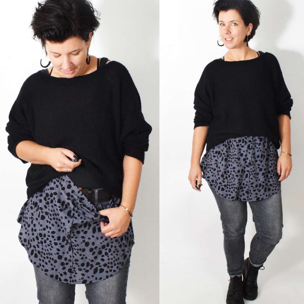 Unsere FAKE.bluse ist die Lösung um das teils ungeliebte Hüftgold hübsch zu verpacken und es somit zu kaschieren, ohne direkt eine komplette Bluse unter den Sweater ziehen zu müssen.