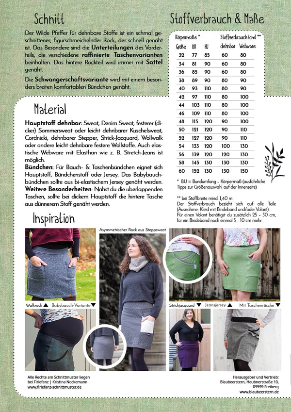 Mit dem Papierschnittmuster Wilder Pfeffer kannst du einen schmal geschnittenen Rock für Damen selber nähen.