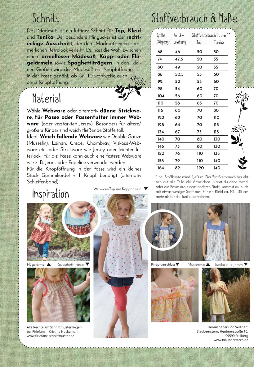 Papierschnittmuster firlefanz Mädesüß für Kinder