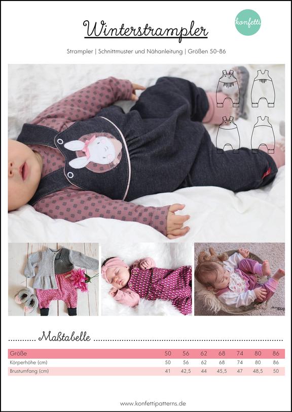 Konfetti Patterns // Papierschnittmuster Winterstrampler – Schnittmuster Baby Strampler Gr. 50-86