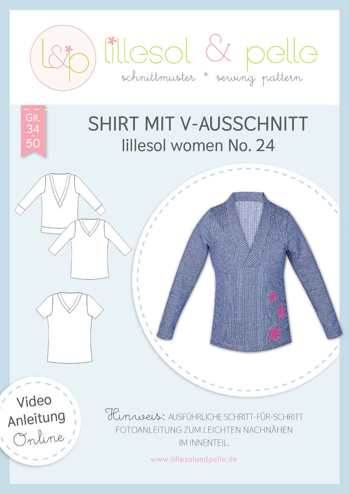 Papierschnittmuster lillesol women No.24 Shirt mit V-Ausschnitt