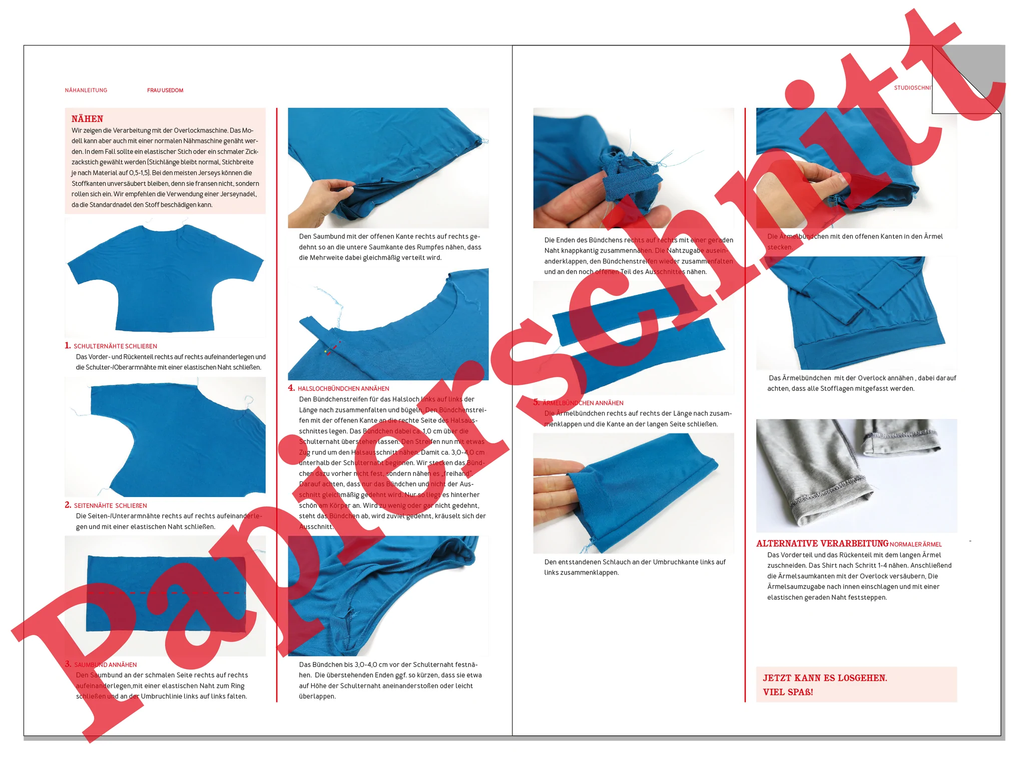 SCHNITTMUSTERBOGEN auf Papier mit farbig gedruckter Fotonähanleitung