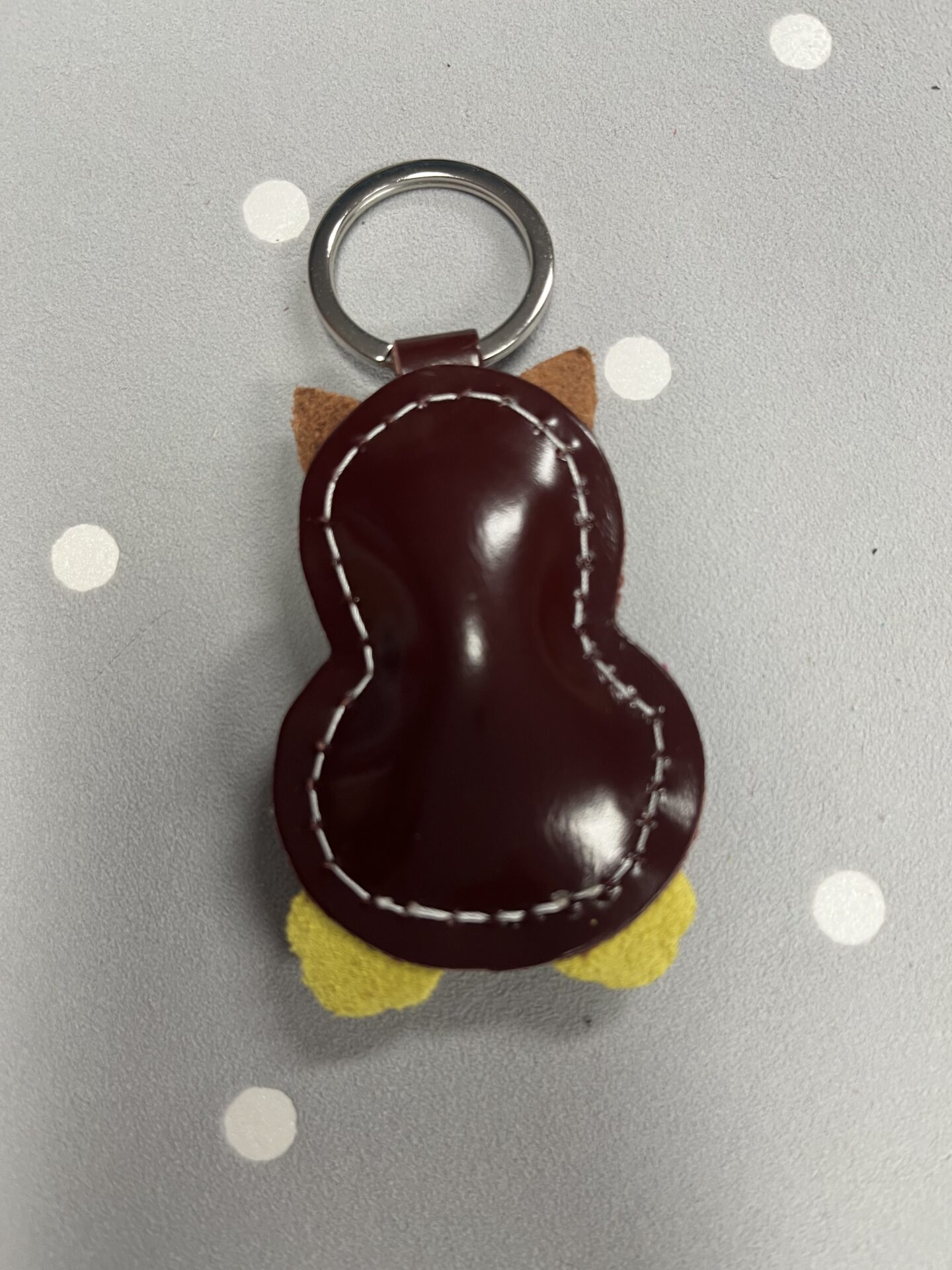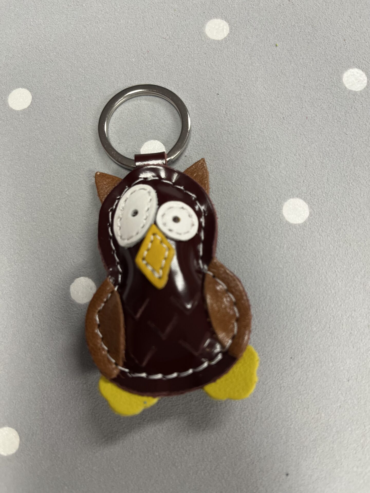 Schlüsselanhänger Eule aus Leder braun glänzend