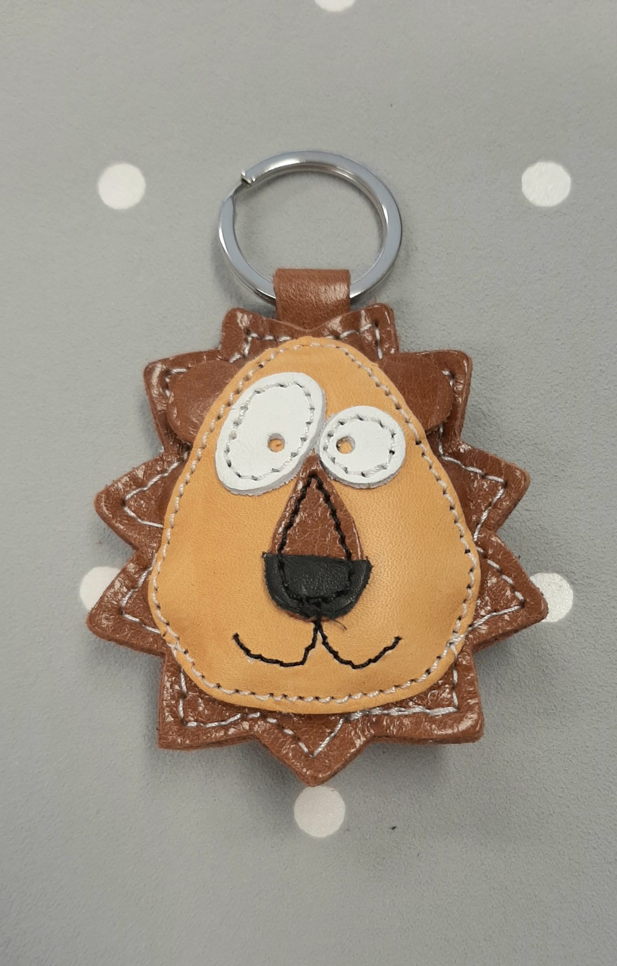 Der Löwe als Schlüsselanhänger ist komplett aus 100% Naturleder gefertigt. Der Löwe ist mit Watte gefüllt, um einen 3D-Look und eine weiche Haptik zu erhalten. Die Abmessungen des Schlüsselanhängers betragen 7,5 x 6,5 cm